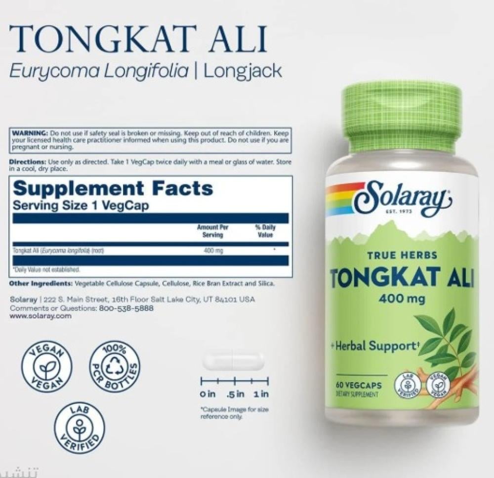 - عشبة تونكات علي (الجذر)، كبسولة السليلوز النباتية، السليلوز، سترات الماغنيسيوم، مستخلص نخالة الأرز والسيليكا.